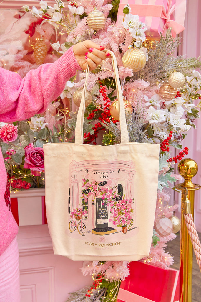 Description: Back in stock from 1st December 2025. First launched in 2019, our Pretty Parlour Tote Bag features a beautiful illustration of the iconic Peggy Porschen Belgravia Parlour by 'Sophie & Lili'.™ Light to carry and spacious for shopping, our 'bag for life' makes a wonderful keepsake or gift for cake lovers.