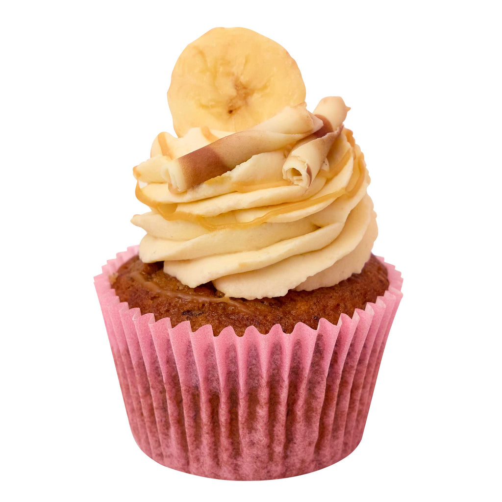 DESCRIPTION: A Parlour favourite. Banana & chocolate chip sponge filled with salted caramel, topped with banana cream cheese frosting, a fresh banana slice and chocolate curls. Please note that all our products are handmade and slight variations in appearance may occur.
